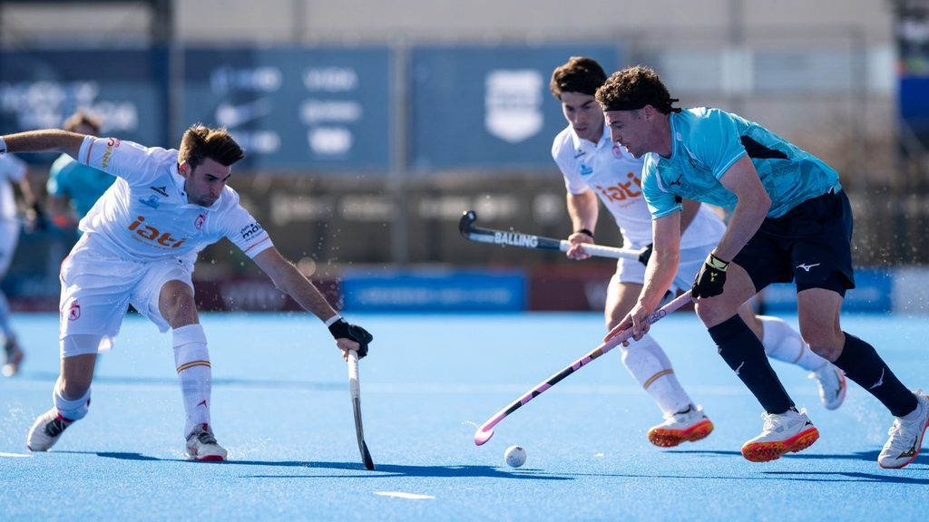 Both teams enjoy fast starts, and the opening minutes were energetic before play settled down. Sam Hooper struck an early blow for England when his deadly accurate 5th-minute drag flick found the corner of goal past Luis Calzado’s fully extended right foot. Marc Miralles then equalised for Spain with a huge drag flick in the 18th minute after the penalty corner was earned from a flowing 80m counterattack. But Nicholas Bandurak fired England 2-1 ahead before half time, the ball lofting to him at the top of the circle off a defender’s stick, where he executed a lightning-quick strike on the turn.