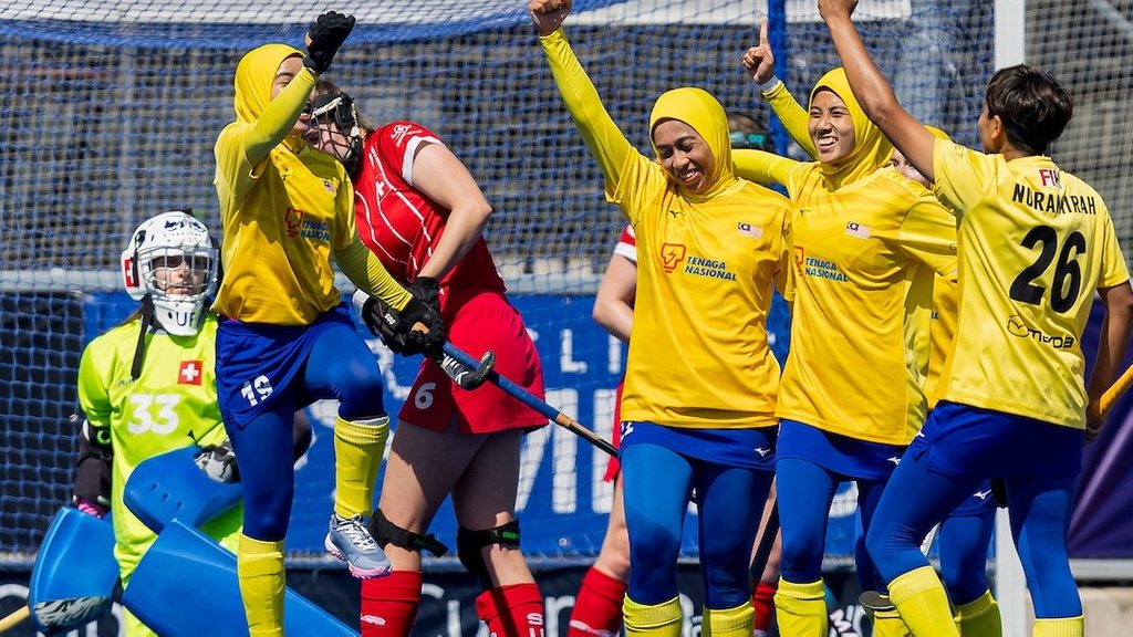 The third quarter saw sustained pressure from Malaysia, which finally paid off when Nur Azhar notched the third goal. The next tally, however, would come from Switzerland, off a rare penalty corner chance in minute 43, finished by Sofie Stomp.